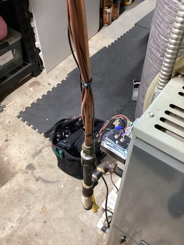 Responded to no-heat call for in-floor heating system in sunroom. Diagnostic testing revealed faulty wiring as the root cause. Completed repair of damaged wire, restoring proper functionality to the heating system. Inspected boiler and associated copper piping network, confirming all components now operating correctly.