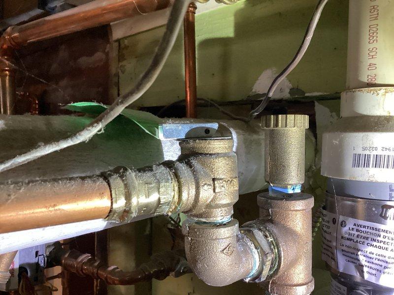 Responded to service call regarding boiler shutdown and reported electrical issues. Upon inspection, found the air valve was functioning properly with no active leaks, contrary to customer's initial concern. Visual inspection of plumbing system showed normal copper piping and brass valve assembly with no issues requiring intervention.