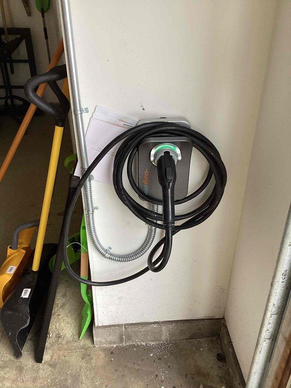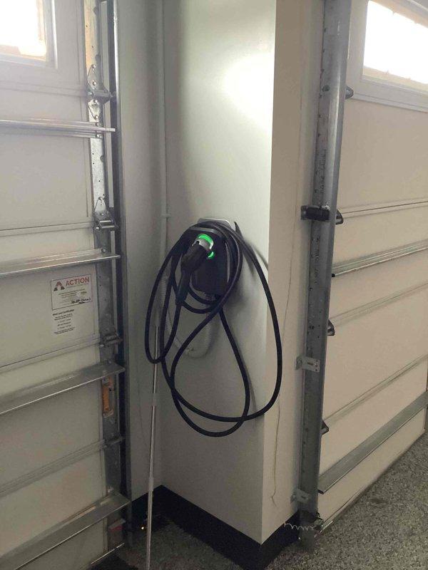 Successfully installed ChargePoint Home Flex EV charging station in garage location, requiring 30ft run from electrical panel. Completed new 240V circuit installation to support Mercedes-Benz vehicle charging requirements, with proper mounting and connection verification. Unit tested and confirmed operational with charging cable properly positioned for convenient access.