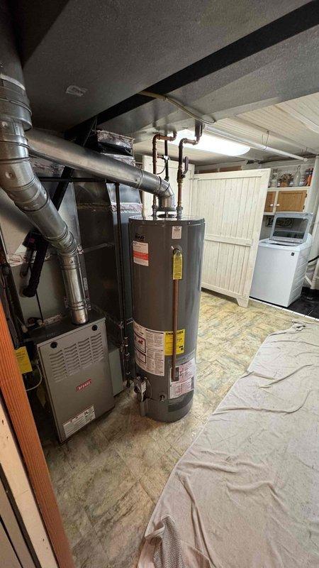 Performed direct replacement of Center Point PROG50-42N RU67 PV water heater under CPT subcontract. Completed like-for-like installation with replacement of 4 feet of vent piping. Installed and connected all necessary plumbing components including PVC venting system with proper joints and copper supply lines.