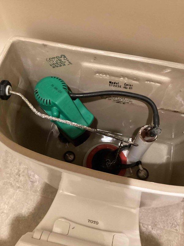 Diagnosed and resolved TOTO toilet fill issue by replacing defective sticking fill valve with new Fluidmaster unit. Previous fill valve was causing 30-60 second delay in tank refill after flush. Installation completed and toilet now functioning properly with appropriate tank fill cycle.